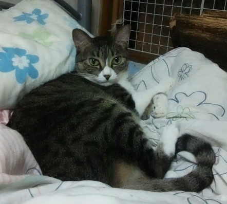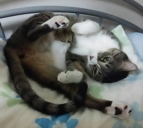 | 特徴(性格など) | キジ白 長いまっすぐのしっぽ 大きなお目目 おっとり型で性格はオチャメ、大好物が食べたいのに他の子に譲ってしまう遠慮猫さん。 パカッと仰向けスリスリゴロ~ン♪たまらずお膝に飛び乗りパカッとスリスリ、猫の限界を超えたヘソ天が止まりません!ラブラブタイムが充実してます♡ 寝る時もパカッとスリスリ愛おしい甘えん坊に変身します^ω^ TV好きです、一番好きな番組はフィギュアスケート^^ 穏やかで猫にも大人気の美人さんです! お誕生日は推定2015年7月20日頃です。 |