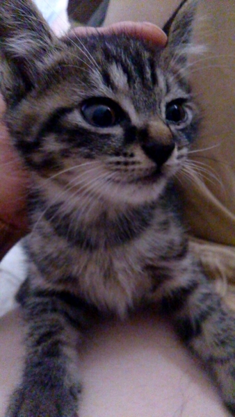 | 特徴(性格など) | 縞模様でかわいい顔しています。 比較的おとなしい方でしょうか。 母親は黒猫の1才未満で、初産です。 2匹兄弟のうちの1匹です。 |