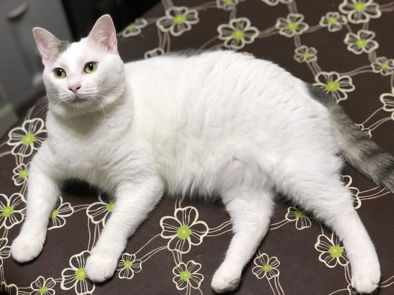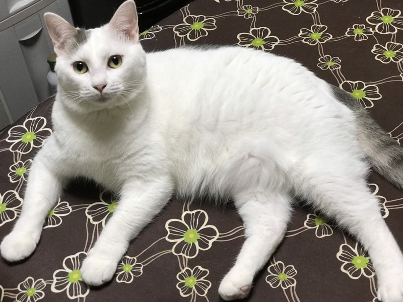 | 特徴(性格など) | 性格はとても温厚です。 甘えん坊で膝の上に乗るのが大好きです。 遊ぶのももちろん大好き! 声はとても小さくて 名前を呼ぶと「ん〜」と返事をしてくれます。 |