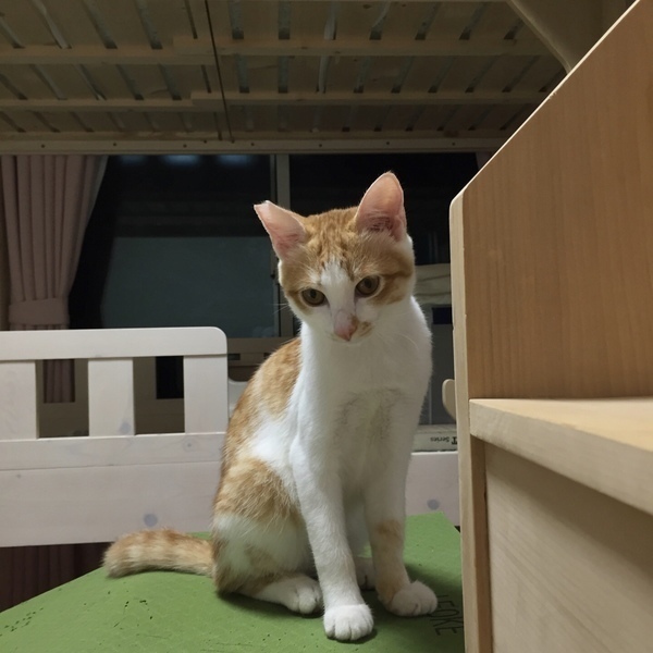 | 特徴(性格など) | ジャニーズ系のお顔立ちで美男子君です。 保護から一週間。ニャーと話しかけてくれるようになりました。 保護から1ヶ月 隠れないようになり顔を合わせるとコロンとお腹を出して甘えてくれます。 攻撃性は一切ございません。 シャーは最初に触ろうとした時に小さく1回だけ振り絞った小さな小さなシャーでした。 シャンプーも良い子にしてくれました。 トイレも一度も失敗なしです。 優しい先住猫ちゃんがいるご家庭ですと嬉しいと思います。 室内ではなんともないのですが病院や譲渡会などで外出すると目の淵が赤くなります。 主治医に診ていただきましたところ「何かしらに反応してのアレルギー。外に出さないのでああれば大丈夫。特に治療の必要はない。」とのことでした。 |