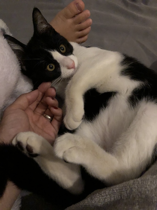 | 特徴(性格など) | 白黒のハチワレマスク君★ とても人が大好きで甘え上手な男の子です。 他の猫ともうまくやってくれる子です。 |