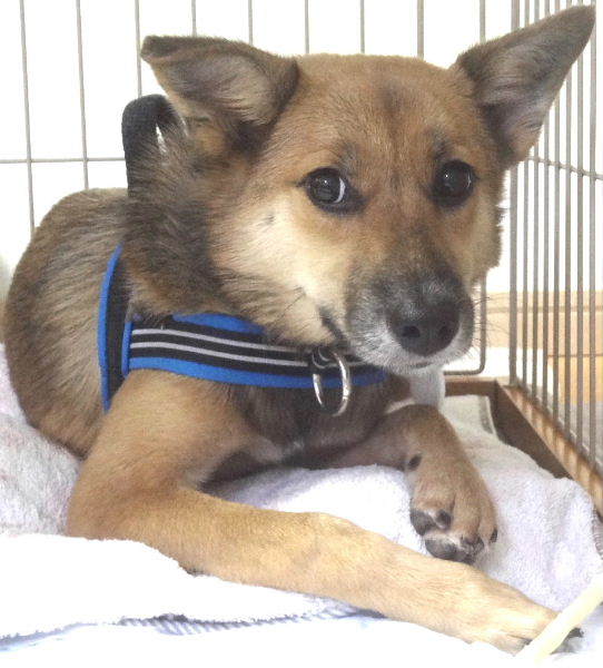 | 特徴(性格など) | MIX子犬の『たお』です。 (ちばわんHP掲載番号No.3960)←申込時は必ず犬の名前とこの番号を記載してください。 【毛色】 茶・黒 【体重】 8.1kg(9/1現在) 【状態】 ワクチン接種済、ノミ・ダニ駆除済、検便(−)、マイクロチップ装着済 【人馴】慎重です 【性格・その他】 大きな耳とパッチリした目がチャームポイントの女の子です。 経験不足の怖がりで、1日のほとんどをサークル内で過ごしています。自ら人に近寄ってくることはありませんが、抱っこもできますし身体のどこでも触れます。犬具の着脱や足拭き、日々のお手入れなども問題なくできます。 食事は、1日2回ドライフードを与えています。食事中に食器を触っても怒りません。小さいおやつでも、手から優しく食べられます。 散歩の経験はなく、リードで引かれることに慣れていません。現在、抱っこで外に出る練習を始めたところです。動きが読めませんので、逸走防止には十分な注意が必要です。 吠えたり鼻鳴きをするこはなく、就寝時や留守番時はサークルで静かに過ごしています。 車酔いは1時間程度なら問題ありません。今のところ、人が困るようなイタズラはありませんが、まだ若いのでこれから変化する可能性もあります。 保護当初は膿皮症と思われる発疹と脱毛がありましたが、毛も生え始め治療は終了しました。 引き続き完全室内飼育で、脱走・逸走防止への細心の注意、毎年のワクチン接種やフィラリア予防などの健康管理を必ずお約束していただけるご家庭で、終生家族の一員として可愛がってくださる方からのお問い合わせをお待ちしております。 なお大変申し訳ありませんが、単身の方や同棲カップル、主にお世話をなさるのが高齢の方のご家庭の場合はお断りさせていただきますのでご了承ください。 【預かり場所】 神奈川県川崎市 【日記】104Eの部屋 http://blog.livedoor.jp/t104e/ |