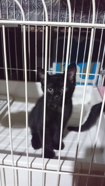 | 特徴(性格など) | 黒(うっすらシマシマ) とっても元気な男の子です。 兄弟でコロコロと遊び回っています。 人にも慣れています。 |