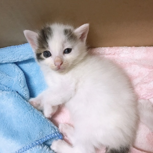 | 特徴(性格など) | 白に、額には少しキジトラ混じりです。 いつも元気に兄妹でじゃれあって遊んでいます。 |
