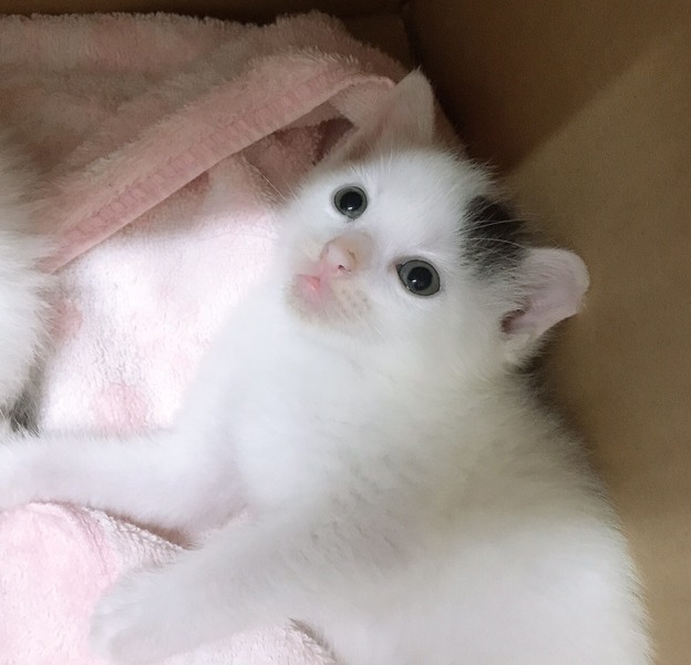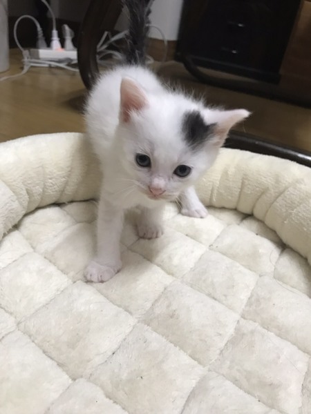 | 特徴(性格など) | 白に、額に一点とシッポ黒さんです。 いつも元気に兄妹でじゃれあって遊んでいます。 |