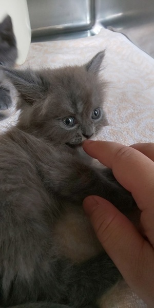 | 特徴(性格など) | 男の子です。 母・スコティッシュ×父ブリティッシュで甘えん坊でよくコロコロ転がりながら指をはむはむしてくれます。 ※短毛ちゃんこちらのサイト様より里親さまが無事に決まりました。 現在長毛ちゃんのみの募集となります。 |