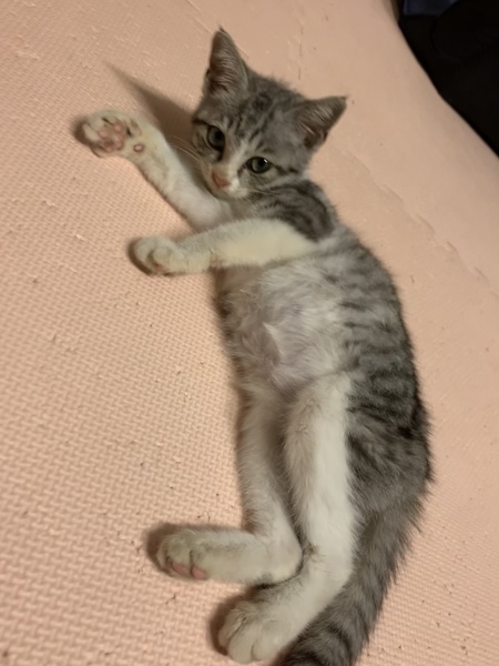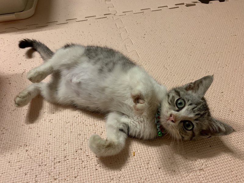 | 里親募集する理由 | 夫が夜、車道の真ん中にちょこんと座り込んでいる子猫を保護して帰ってきました。 我が家には既に2匹猫がおりますので、これ以上お迎えが難しく募集に至りました。 |