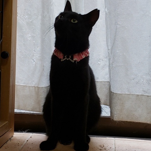 | 特徴(性格など) | 艶々で尻尾は真っ直ぐ長い可愛い黒猫ちゃんです。 新しい環境にも直ぐに馴れると思います。 膝に乗せていると甘えて甘噛みしてきます。大人しく優しい性格です。 |