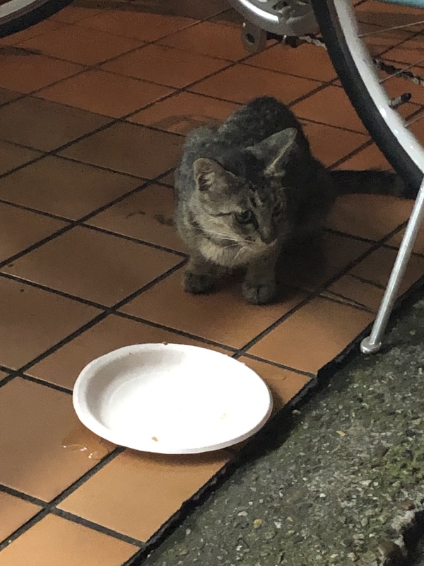 | 特徴(性格など) | 灰色の、かわいい子猫です。警戒心が強いですが、ご飯をあげると寄ってきます。写真を追加で撮ったら、またアップします。 | ||