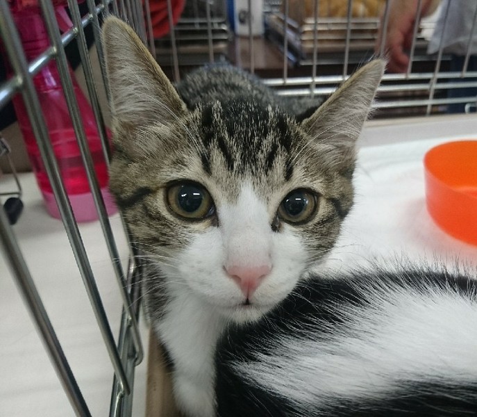 | 特徴(性格など) | 2019.4.10生まれ(推測) 毛色:キジ白 大人しくて控えめでピンクのお鼻がかわいい女の子。 殆ど鳴き声が聞こえずいつも口パク、サイレントにゃ~。 でも抱っこ大好き! 喉を鳴らしていつまでも抱っこされています。 大人猫から子猫まで、みんなと仲良くできます。 姉妹猫におっぱいを吸われても大人しくしている大らかな子です。 |