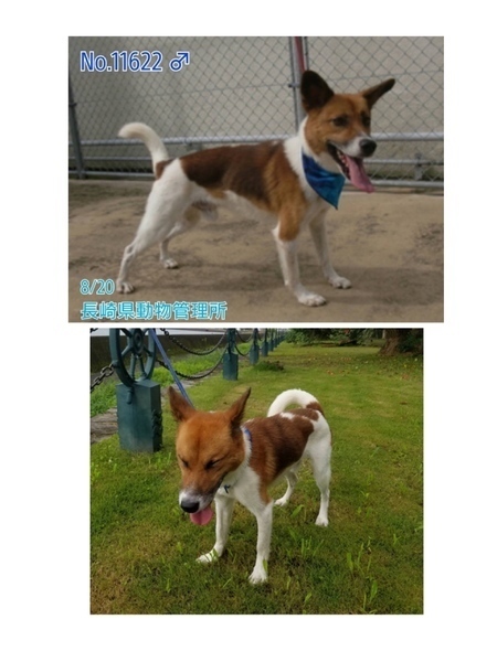 | 特徴(性格など) | とても人懐こくて可愛い白茶の中型雑種、5歳の元気な男の子が助けを待っています! 高齢飼い主が病気の為飼育困難となり保健所へ持ち込み、殺処分機のある長崎県動物管理所へ移送されてきました。 可哀想に外に繋いで飼われていて、お散歩やしつけもきちんとされないまま生きてきたようです。雨風や暑さ寒さにも苦しんできた事でしょう… 犬はどんな飼い主でも信じています。 信じてきた飼い主に捨てられて今どんなに寂しい思いでしょうか。 でもそんな悲しい環境のままでいたより、良かったと考え、この子に、優しく撫でてもらったり楽しくお散歩したり、柔らかな布団で眠ったりそんな当たり前の幸せを、温かい本当の家族を見つけたいと願っております。 見た目の推定になりますが体重は大体13〜15キロ前後位でしょうか。 優しい職員さん達が連れ出してくれるお散歩では、最初はヤッホー!という感じでグイグイ引きが強いですがしばらくしたら落ち着きます。人の気配がすると出して欲しくて、構ってほしくてなのか、こっちに来て〜と言うように結構吠えていますが無理もありません…子犬のまま大きくなった雰囲気の無邪気なワイルド系男子です(^^) とても人が好きな子ですし、この子ならきっと新しい家庭にも馴染んでいけると思います。 尻尾フリフリニコニコのこの子を、広い心でドンとこい!(^^)と家族にしてくださる方、いらっしゃいませんか?どうぞ宜しくお願い申し上げますm(_ _)m ⭐️必ず室内飼育で、なるべく沢山優しく触れ合っていただけるお留守番の少ないご家庭。 ⭐️トイレの躾は出来ていません。 未去勢の男の子で片足を上げて排尿します。この点も踏まえ、(マナーベルトやL字型のトイレを用意など)何かと手がかかり大変だと思いますが覚悟と理解で受け入れて下さる方。 ⭐️犬の飼育経験があり愛情を持って犬をしっかり躾することが出来る方、お散歩や運動に充分時間をあてられる方、場合によりトレーニング教室なども視野に入れて考えてくださる方。 何卒宜しくお願い致します。 ※狂犬病予防接種、フィラリア予防や混合ワクチン実績も無い為、フィラリア感染の可能性も有りうる事となります。 以上の点を踏まえ、この子の置かれている状況をご理解のうえ、全て受け入れ寄り添っていただけるご家庭で可愛がっていただきたいと祈っております。収容されている全ての子達は身勝手な人間による被害者であり、何も悪くありません。 家族の一員として生涯大切にしてくださるご家庭とのご縁が結ばれ幸せになれます様に! 1日も早く温かな愛情を目一杯注がれながら、元気に幸せに生きてほしいです。人間より遙かに短い生涯です。 硬いコンクリートの上、檻の中で、命の期限が迫る中、ひたすら優しい素敵な里親様を待ち続けています。 悲しい事にこの世の中、人間に飼われないと犬は生きていく事が出来ません。 捨てる飼い主、探さない飼い主、医療にかけない飼い主、虐待する飼い主…飼い主を選ぶ事も出来ません。まだまだこれからのこの子を生涯大切に可愛がって下さる優しい素敵な里親様、どうかお願い致します。きっと、必ず最高の家族になります! もうこれ以上悲しい辛い目に遭わせたくありません。本当の愛情、温もりを知ってほしい、辛かった分、寂しかった分、まだまだこれからの犬生はのびのびと幸せいっぱいに愛し愛されて、生きてほしいと願っております。家族の一員に迎え、愛情溢れるご家庭で一緒に暮らして頂けませんか。 何卒宜しくお願い致します(๑•ᴗ•๑)♡ 健康状態 今のところ体調不良は見受けられず、フードも食べています。 管理所では収容するのみ、になり、健康診断やワクチンなどは一切行っておりません。 狂犬病予防、混合ワクチン接種、フィラリア予防実績も無い為、フィラリア感染などの可能性も有り得る事となります。 収容動物の健康面での保証はございません。 (性格も収容中に職員が見て接した分かる範囲となります)トライアルも出来ない状況であり、例えどんな病があろうともこの子の全てを受け止め丸ごと受け入れて下さる方、終生愛情飼養して下さる方のみ への譲渡となります事をご理解、ご了承の程何卒宜しくお願い申し上げます。 ※譲渡後は必ずお早めに病院でメディカルチェック(血液検査、便検査、フロントライン、シャンプー等)去勢手術を確実にお願い致します。 ※去勢、避妊手術は長崎県動物管理所より譲渡条件の1つになります。 ※逸走、脱走にはくれぐれもご注意願います。一瞬の隙をついて開いたドアの隙間から飛び出して行ったケースもございます。 細心の注意を払い、たすき掛け、ダブルリードで、言葉を持たない大事な家族を守る為に、首輪、胴輪には必ず迷子札、鑑札をつけてくださいm(_ _)m https://wanchan.jp/osusume/detail/2395 http://psnews.jp/dog/p/45558/ https://light-comes-in.jp/dog-doublelead/ ⭐︎ノミマダニ駆除(ネクスガード投与済み) ◆ワクチン摂取、去勢手術の有無 未接