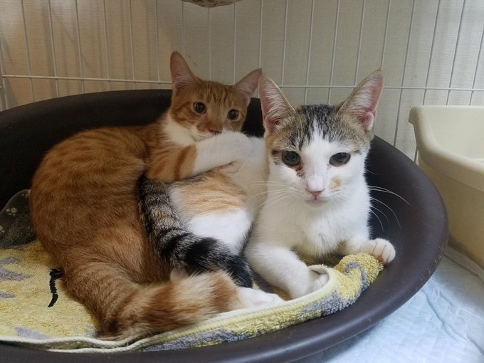 | 特徴(性格など) | ◆ちゃとらのしましゃちゃんはトライアルに入る予定です◆ 多等崩壊レスキューで入った家の猫たちです。 【三毛:♀ こまろちゃん】 【チャトラ♂ しましゃ君】 こまろちゃんは推定年齢よりも若く、まだまだ遊び盛りです。 失われている歯があるので、獣医師の判断でこの年齢となりました。 おとなしく、ほとんど鳴きません。が甘えたい時にちょっと小さな声で鳴くことがあります。 2猫ともに、人に慣れていますし、こわがりません。 最初はおどおどするかもしれませんが、何日かすれば寄り添ってきてくれます。 人がいなくなった家で猫だけで2ヶ月すごしていますので、 とても人恋しくなっています。 シッターさんが来訪すると、必ず出てきてすりすりします。 シッターさんは一日に一回でしたので、帰るのがかわいそうだと言っていました。 |