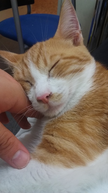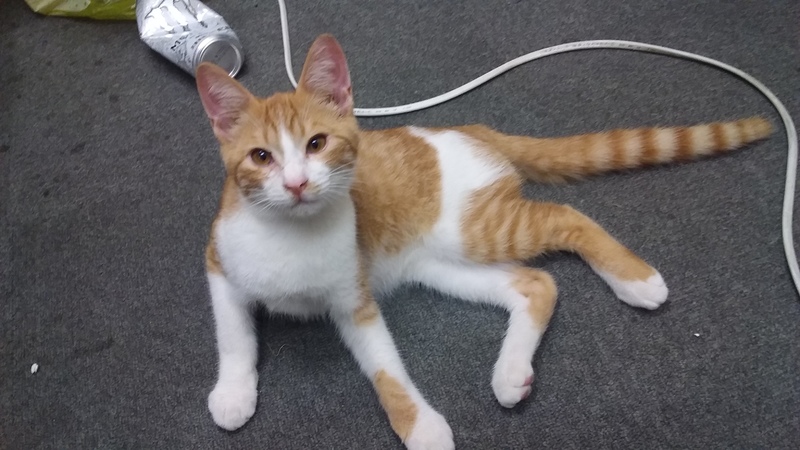 | 特徴(性格など) | 茶トラのオス猫です。 性格は人間大好きな甘えん坊。 誰にでも着いていき擦り寄ってきます。 医者に連れていった所生後2ヶ月との事でしたがそれにしては大きいです。 |