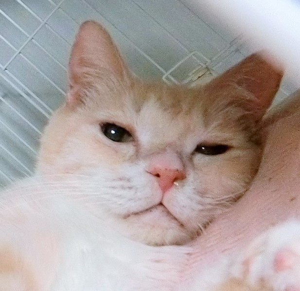| 里親募集する理由 | 餓死寸前で犬小屋のエサの付近で倒れていたのを犬が発見し、たらい回しになった末に私に押し付けられました。 猫風邪の後遺症で目が目やにで塞がり鼻も利かない→餌がとれない→飢餓で衰弱。この流れだと思います。 我が家には問題があり貰い手のつかない猫や、要介護の猫がいるため、これ以上の保護はどうしても困難です。また、一匹一匹を十分に可愛がることもできません。 |