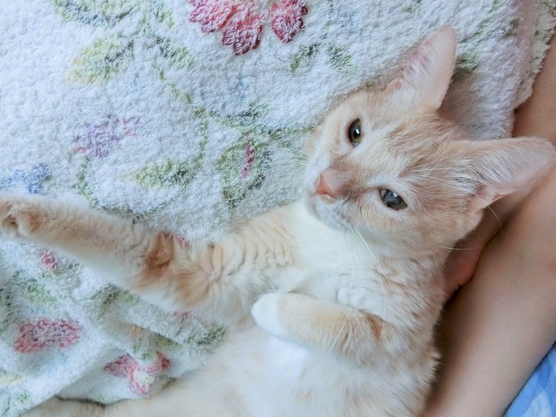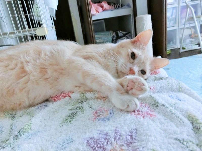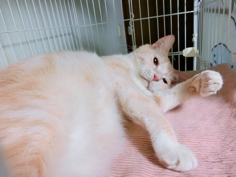 | 特徴(性格など) | 仮名は「サラミ」という男の子です。 3種ワクチン、エイズ白血病検査(陰性)、避妊手術、駆虫、シャンプー、爪切り、トイレの躾が済んでいます。 獣医師の見立てでは歯の状態から5~6歳ではないかとのことです。猫風邪の後遺症で慢性的に目と鼻がショボショボしています。特に目は常に腫れ気味でブサかわになっており、本来の顔が不明です。たまにクシャミする程度で(粘着系の鼻水は飛ばさないのでインテリアは平気)、特に介護は必要ありませんが、念のためメニニャンというサプリを毎日飲ませています。安いので月に千円くらいです。 体調を崩すと目が目やにで塞がり目が見えなくなるため、外では生きていけません。完全室内飼いであれば健康に生きられます。 野良時代に目ヤニをどうにかしようと手でこすったせいで眼球に傷が残り、一部濁っていますが視力に問題はないそうです。(手術で可能な限り治しました) 珍しいミルクティー色の毛です。よく見るとうっすらアメショ風のマーブル模様をしています。 サラサラ乾燥タイプの柔らかい毛質です。保護した時から去勢手術が済んでいたので捨て猫かもしれません。 人間大好きで常に人の近くで転がっています。一瞬でもさわるとスリスリと頭突きが始まります。 人に愛された経験がないのか、、まだ抱っこには慣れておらず長く抱えることはできません。ナデナデスリスリは死ぬほど好きで永遠に要求してきます。 はっきり言ってデブです。(しかし血液検査の結果は良好)長く飢餓状態にあったため食への執着がすごく、気が付いたら太っていました。缶詰が好きでドライには無欲なのでダイエットはしやすいと思います。 はっきり言ってブチャイクです。でもカワウソみたいなブサかわ顔が愛嬌あって愛しくなってきます。 運動キライで一日中トドのように転がっており、サプリ以外では全く手がかかりません。 (おいしいサプリなのでウェットの上にかけるだけで食べてくれます) 飲食、トイレ、スリスリ以外で動く姿が滅多に見られないほど運動量が少ないです。 他猫に対しては、好き嫌いがはっきりしています。ケンカはしませんが、興味のない子には関わろうとせず、先住猫のお友達役としては失敗する可能性があります。単独飼育は問題ありません。愛情に飢えているため、留守時間の少ない二人以上のお家を希望しております。 ・募集する理由や経緯など:餓死寸前で犬小屋のエサの付近で倒れていたのを犬が発見し、たらい回しになった末に私に押し付けられました。 猫風邪の後遺症で目が目やにで塞がり鼻も利かない→餌がとれない→飢餓で衰弱。この流れだと思います。 |