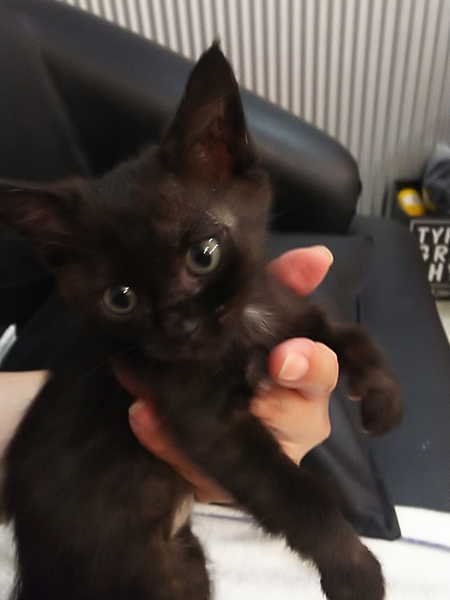 | 里親募集する理由 | 徳島市某所にて、一人でいるところを保護しました。 普段、野良ネコや外飼いのネコがいない場所ですので、恐らく、生後間もなく遺棄されたものと思われます。 可愛い元気な黒ネコの女の子ですが、我が家には先住ネコが2匹いるため、優しい里親さんを募集します。 |