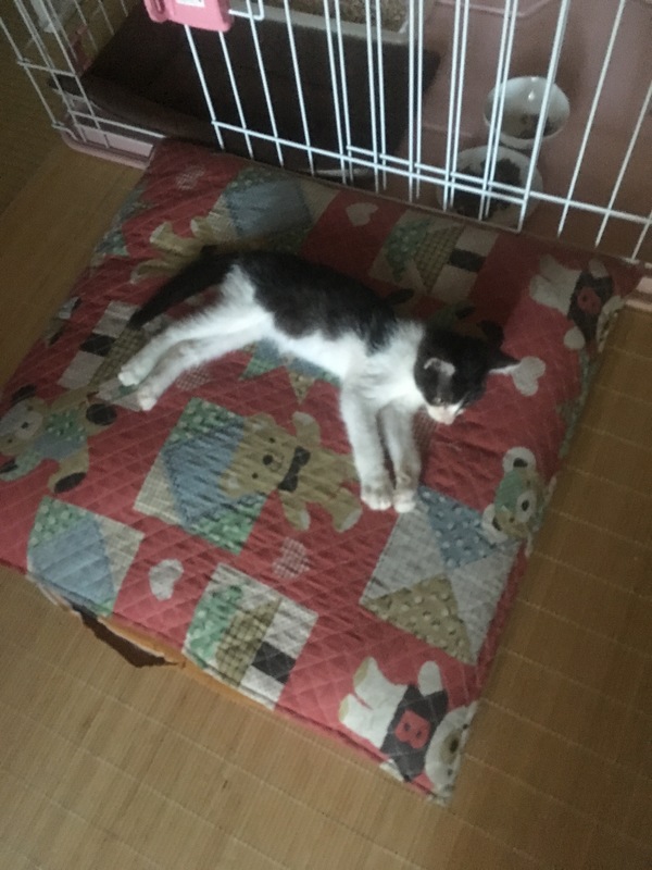 | 里親募集する理由 | 友人の自宅近くに電柱の影に子猫がうずくまっていて暑さのあまり動けないようで、そのまま保護して病院に行くと脱水症とのこと即入院、やっと元気になり退院して来ました!家には4匹の引取り猫の先住猫ちゃんがいるので、これ以上保護できないため、里親さん募集をしています。 | ||