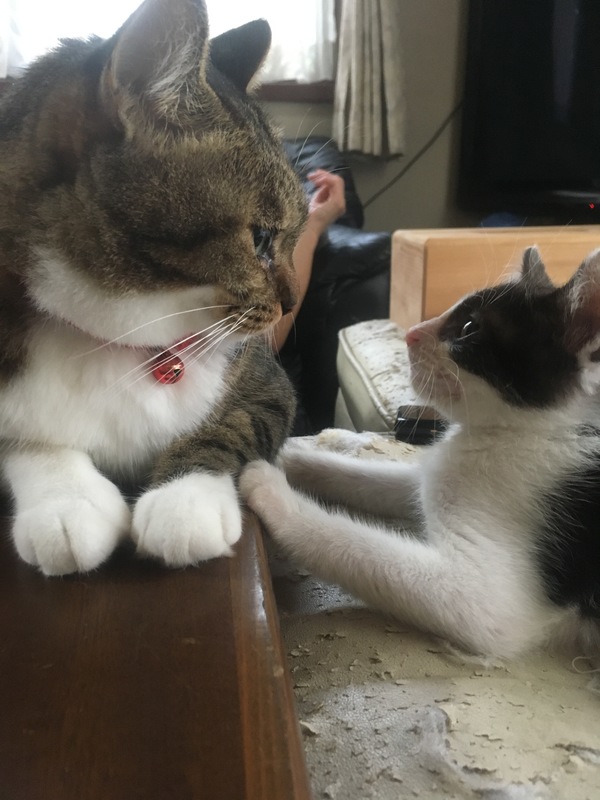 | 特徴(性格など) | 白黒のハチワレちゃん!とても大人しく甘えん坊、社交的で誰にでも慣れています。他の先住猫とも仲良く遊んでいます! | ||