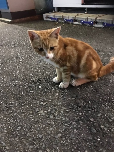 | 里親募集する理由 | あるコンビニの前で数日前から夜になったら帰ってくる生活をしていて兄弟猫らしい子が車に轢かれてしまったらしく、車通りがかなり多い場所なのでこの子も轢かれるのではないかと店員さんも心配していたので車通りの少ない自宅近くに連れてきました。 |