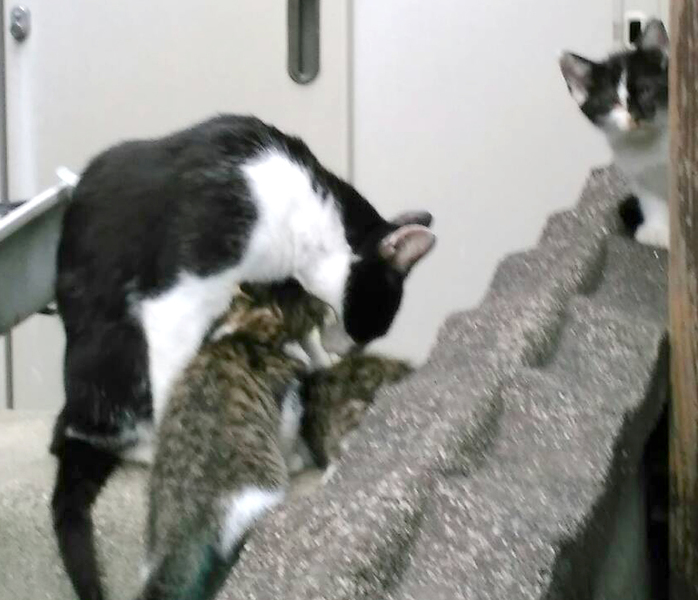 | 特徴(性格など) | 茶トラと白黒の子猫で、現在4ヶ月です。 知り合いの庭で生まれました。 食欲旺盛で親子仲良し、人懐っこい性格です。 |