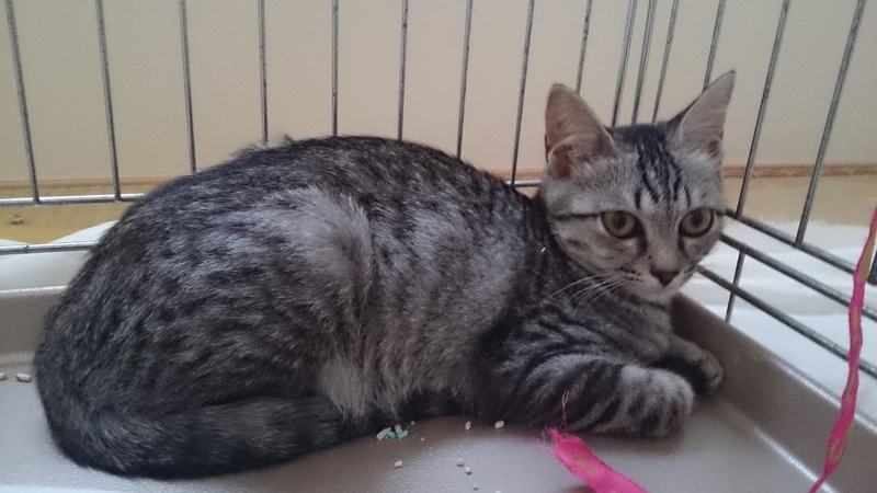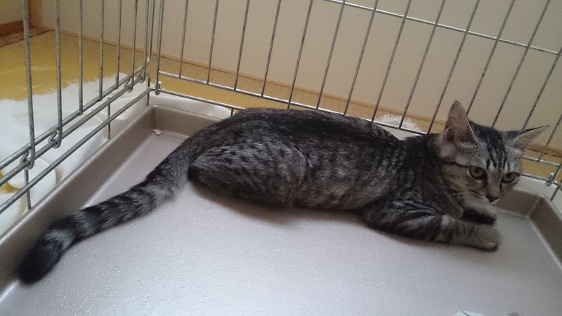 | 特徴(性格など) | ビビりですが、少しずつ人間に慣れてきています。 サバトラ柄。顔が小さくスリムな体系、シッポ長いです。シッポの先が少し曲がっています。 のみ取り、虫下し、3種ワクチン1回接種済。10月初めに再度検便。 |