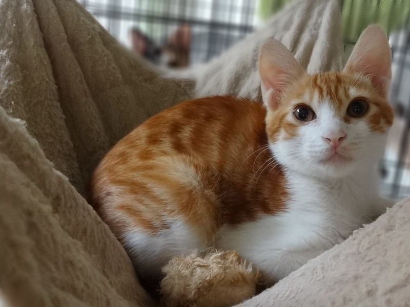 | 特徴(性格など) | 【仮名】ポッキーくん 【性格】 怖がりな部分はありますが、ナデナデが好きな仔です。ハンモックやキャットタワーの箱の中が大好きでお昼寝中に撫でてあげるとゴロゴロと喉を鳴らしてしあわせそうなお顔をしてれくれます☆抱っこは練習中です(**)おもちゃで遊ぶのが大好き! ※環境が変わると隠れてしまう可能性があるのでポッキーくんのペースで見守って下さると嬉しいです。 |