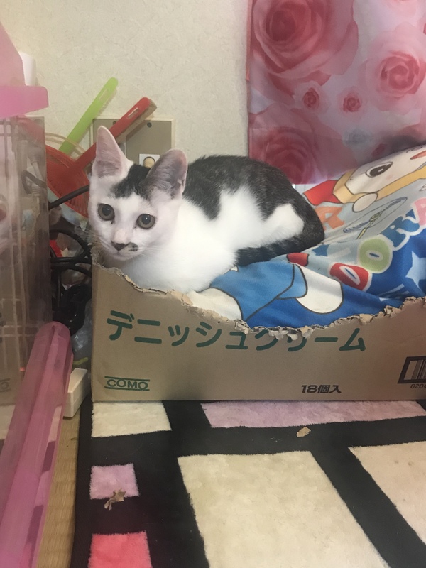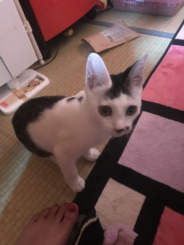 | 里親募集する理由 | 元捨て猫の野良ちゃんです。知り合いのご主人が愛媛から飛行機で連れて来ました。その時もとてもお利口さんだったみたいです。 過去に可哀想な思いをして来たと思います。それでも人を信じ、人が大大大好きです。暖かいご家庭で一緒に遊んで下さい☆ |