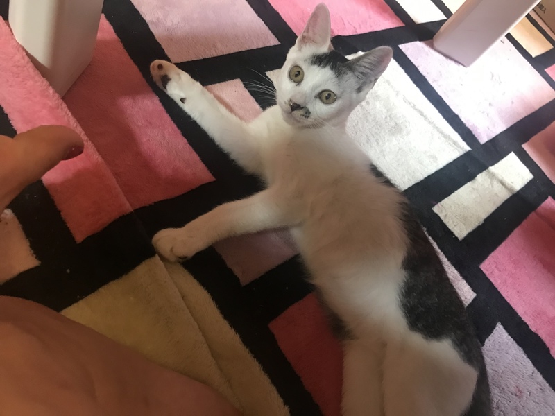 | 特徴(性格など) | 尻尾が長く白にキジトラの柄がある猫ちゃんです! とても人懐っこく、大人も子供も大好き! 猫ちゃんも大好きです☆ トイレもすぐ覚えお利口さんです。 |