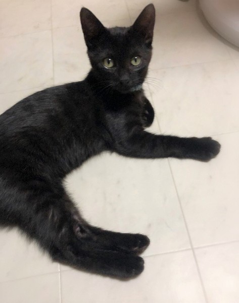 | 特徴(性格など) | 仮名、ディジー つやつや黒い女の子。 環境に慣れるまで数日必要です。 慣れてしまうと抱っこでたるんたるん、されるがまま骨なし甘えん坊に 大きい猫とも仲良く過ごせる子です。 |