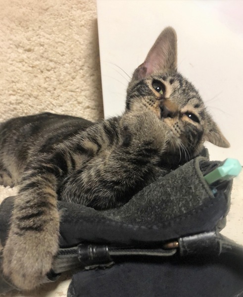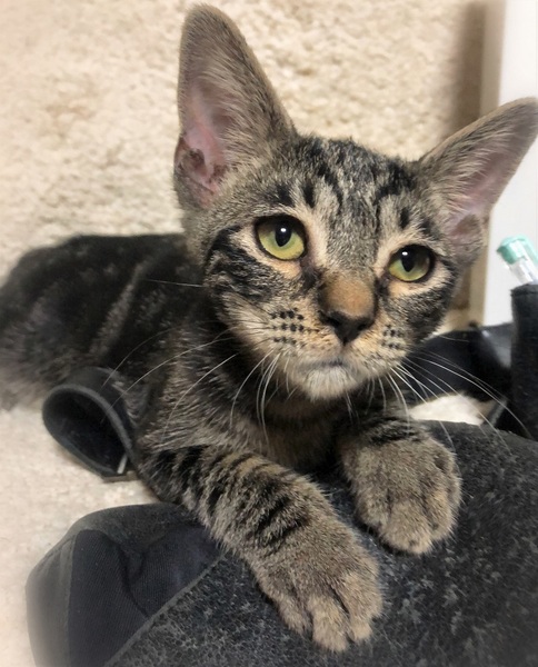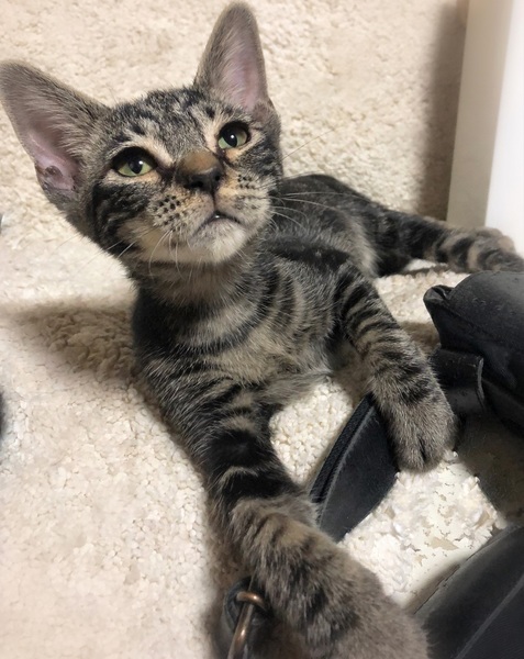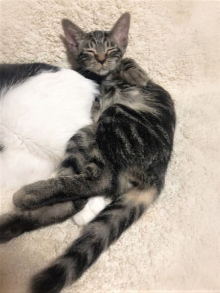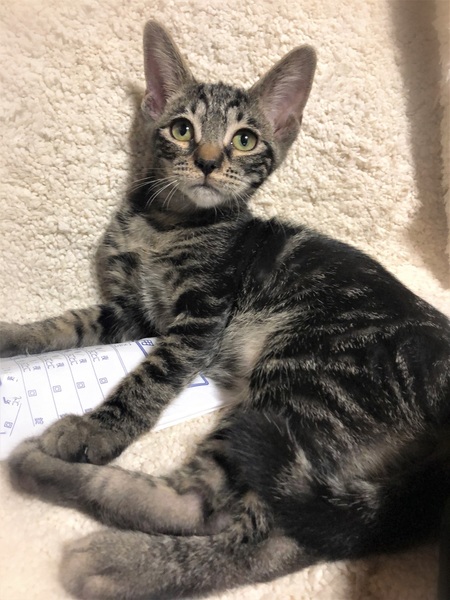 | 特徴(性格など) | 仮名、ぎずも 顔はキジトラ・体はアメショ風のしましま柄の女の子 膝が大好き過ぎて初対面でも抱っこされると、くつろぎそのまま眠ってしまう大らかさん。 甘えたくなると、じぃーっとこちらを見つめつつ膝に手を伸ばして来ます。 しょぼぼ顔が可愛い甘えん坊です。 |