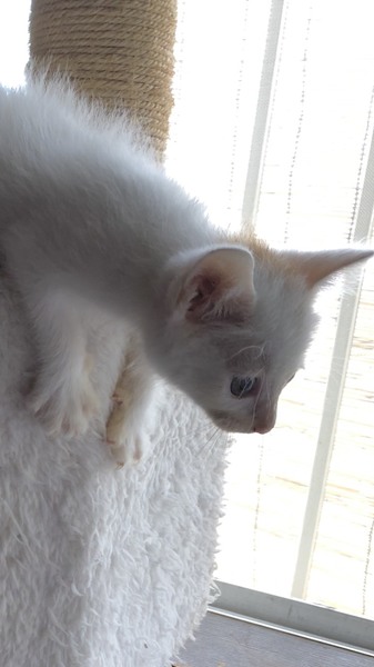 | 特徴(性格など) | 真っ白の体に、少しだけオレンジ色がはいっている白茶の男の子です。 だっこができるお利口さん! 環境が変化すると少しビクビクしてしまいますが、じきに慣れると思います。 |