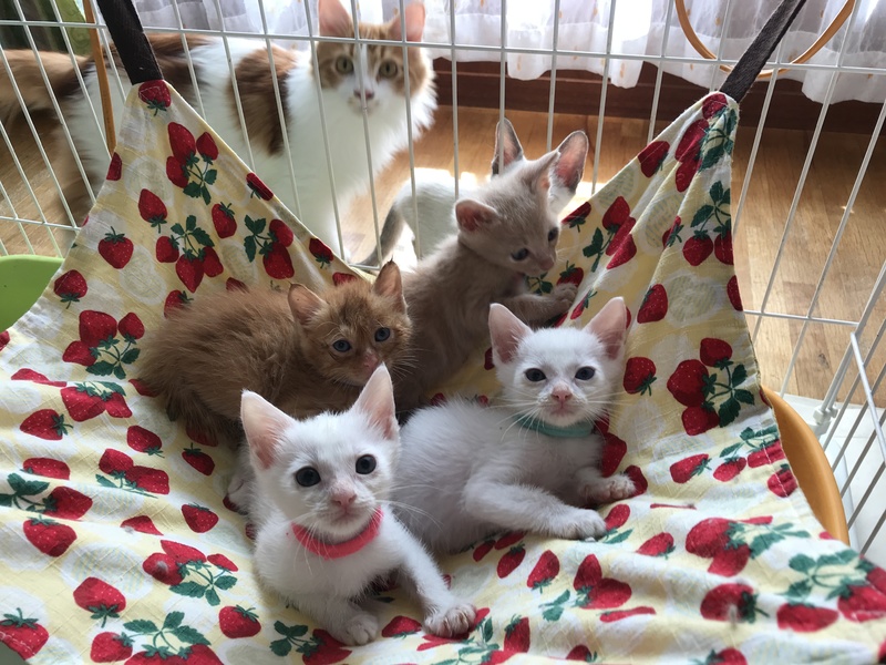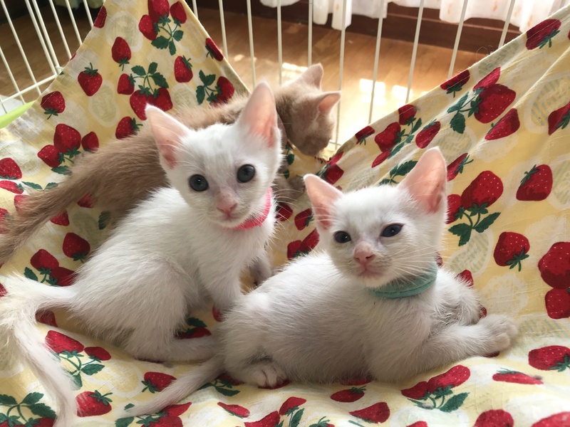 | 特徴(性格など) | 姉弟3匹と元気いっぱいで遊んでいます。ミルク猫から育てていますので、人なれ抜群でとてもかわいい兄弟です。 ノミダニ、お腹の虫駆虫済み。エイズ白血病ウイルス検査陰性。 ワクチンはもう少し体重が増えてからの接種になります。トライアルは接種後からとなります。 近況や そのほかの里親募集中の猫たちは 「サクラねこ名古屋」のブログで毎日御紹介させていただいております。 http://sakuranekonagoya.jp/ |