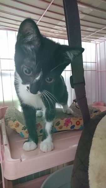 | 特徴(性格など) | 背中が黒く、おなかが白い黒白猫ちゃん,お顔の1ヵ所が白いです | ||