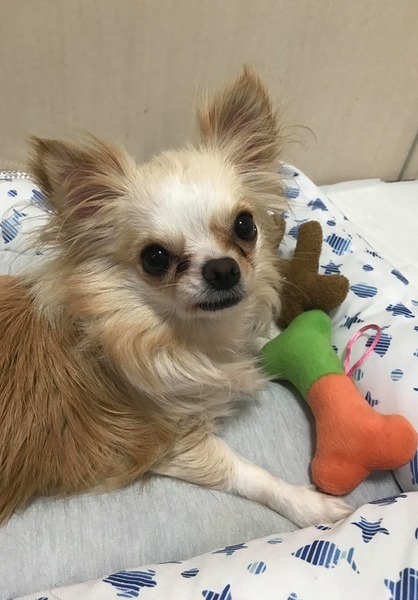 | 特徴(性格など) | 【仮名】ほのか 【犬種】ロングチワワ 【毛色】パーティカラー 【性別】女の子 【年齢】2歳(2016.12.17生) 少し怖がりで寝ていても物音に敏感です フレンドリーで甘えん坊で誰にでも尾を振ってよっていきます。 お腹も見せて人が大好きな子です。 おもちゃが好きで、自分で投げて取ってきたり一人遊びもします。 現在ダックスと一緒に暮らしていますので他の犬とも仲良くできると思いますが チワワ気質なところも持っています。 相性などもあると思いますので、できれば1頭で可愛がって下さるお家を希望ですが先住犬がいらっしゃる方もご相談ください。 まだまだ幼く、かまってほしくて甘噛みをすることがあります。 ゆっくりと躾をお願いします。 現在おすわりとお手はできますが気まぐれでしない時もあります。伏せ、待て練習中です。 注意点; なんでも子犬のように口に入れます。 誤飲しないように口にしそうな物は置かないようにお願いします。 トイレはトイレシーツで出来ますが部屋が狭いため覚えやすいのかもしれません。 お家が変わると失敗する可能性もあります。 少し皮膚に炎症があり(マラセチア)しばらく定期的に薬用シャンプーでシャンプーをお願いします。 保護してからのほのかの様子を記載しています。 よく読まれた上でお申し込みをお願いします ほのかの預かり日記です https://ameblo.jp/satooya51/theme-10110117621.html 医療】 ●ワクチン ブリーダーの所でしていますが入院してしまい接種日がわからないので抜糸の時に接種します ●血液検査済 アレルギーの数値が少し高いですが正常範囲内とのことです。 ●フィラリア陰性 ●検便等異常なし ●ノミダニ駆除薬済 ●歯石取り済(9/7) ●避妊手術済(9/7) ●臍ヘルニア手術済(9/7) ●胸部レントゲン(心臓肥大なし) 獣医の診断の時はわかりませんでしたが左足にパテラがあるかと思います。 今の所痛がったりもしませんので日常生活には支障はありませんがフローリングなど滑りやすい場所にはマットを敷くなどの対処をお願いします。 背中に軽度の皮膚炎があります。 (マラセチア) しばらく定期的に薬用シャンプーをお願いします。 ドライフードを1日2回 まぜずにウエットフードを入れたりサツマイモをあげたりしています。 アレルギー体質なのでアレルギー用のフードをあげています。 少しぽっちゃりぎみなので 良質のフードのダイエット用と交互にあげて皮膚の状態を見ています。 |