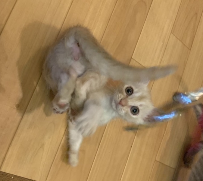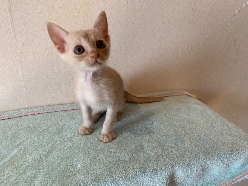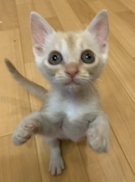 | 特徴(性格など) | 元気いっぱいで同じサイズの子猫たちと走り回っています。人なればっちり!ゴロゴロ言ってかわいいです。 ノミダニ、お腹の虫駆虫済み。エイズ白血病ウイルス検査陰性。 ワクチンはもう少し体重が増えてからの接種になります。トライアルは接種後からとなります。 |