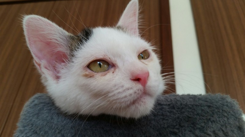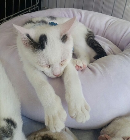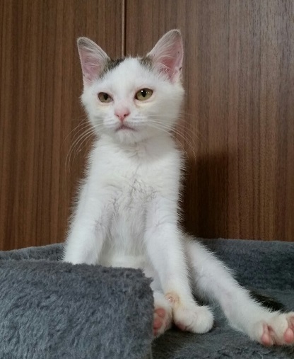 | 里親募集する理由 | とある会社の敷地に現れるようになり、猛暑の中衰弱していたので緊急保護されました。 現在預りボランティアさんのお宅で家猫修行中!! |