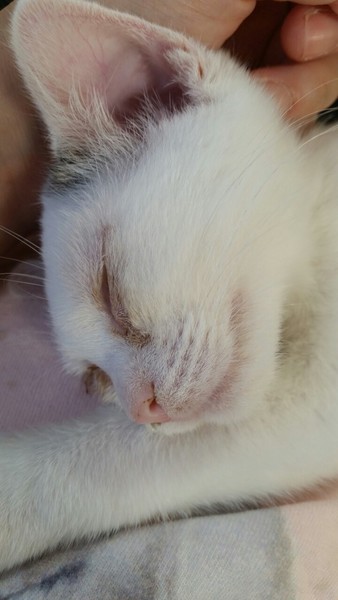 | 特徴(性格など) | 2019.6.16生まれ(推定) 毛色:キジ白 ふわふわの毛並の男の子。 人間が大好きで、眠くなるとお腹の上に乗って来たり、体にそっと触れて寝る子です。 昼間は解放してあるケージの中のハンモックで良く寝ています。 抱っこが大好きで、子供にも抱っこさせてくれます。 ちょっと眠そうな目がチャームポイント。癒し系ナンバーワンの男の子です。 ケージ慣れ、大人の先住猫慣れ、子猫慣れ、人慣ればっちりです。 とにかくかわいいので、会ってしまったらメロメロになること間違いなしです!! |