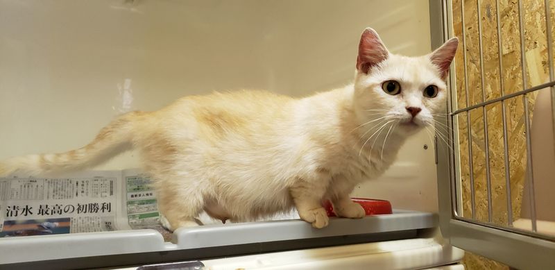 | 特徴(性格など) | クリームの中毛の綺麗な短足マンチカンちゃん 慣れ慣れの甘えん坊です | ||