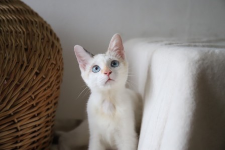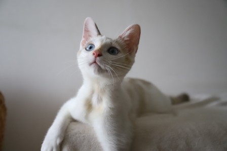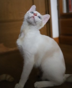 | 特徴(性格など) | きれいなブルーの瞳のラグドールミックスの女の子です。 とても活発で元気な子です。 1か月くらい前 真菌にかかりました。現在は獣医さんでの真菌のライトには反応しなく成りほぼ、治っていますが、おでこのところの毛がまだ少し薄いので 譲渡の際はお薬を一緒にお渡ししますので続けて塗薬してください。 |