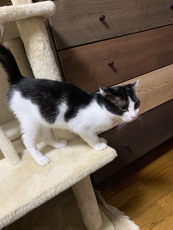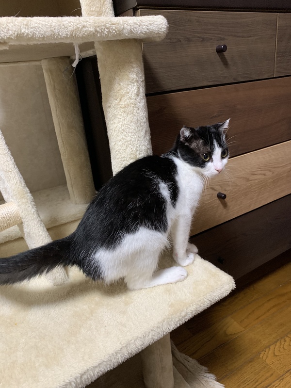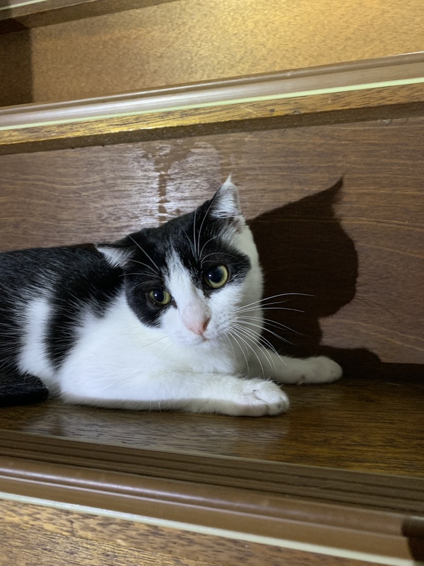 | 特徴(性格など) | 白黒。手を近づけると頭を擦り付けてくる程度には人に慣れています。 | ||