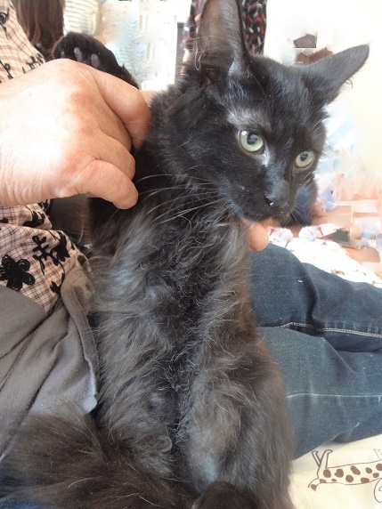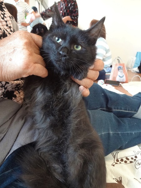 | 特徴(性格など) | かわった長毛のユニークな黒猫ちゃんです。 お腹は白とグレーが混ざってます。 しっぽはグレーと黒のシマシマ模様がうっすら出ています。 ふわっふわでとても気持ち良い毛並みです。 抜群の手触りです! とっても良い子です。 おだやかな性格で、人とも他の猫とも仲良くできます。 まだ子どもなので、玩具で遊ぶのも大好きですが 大人になって落ち着いたら、 ゆっくり寛ぎたい時に一緒に過ごせる良い相棒になると思います。 食事:ドライフード トイレ:失敗なし 爪切り:できます エイズ・白血病:陰性 |