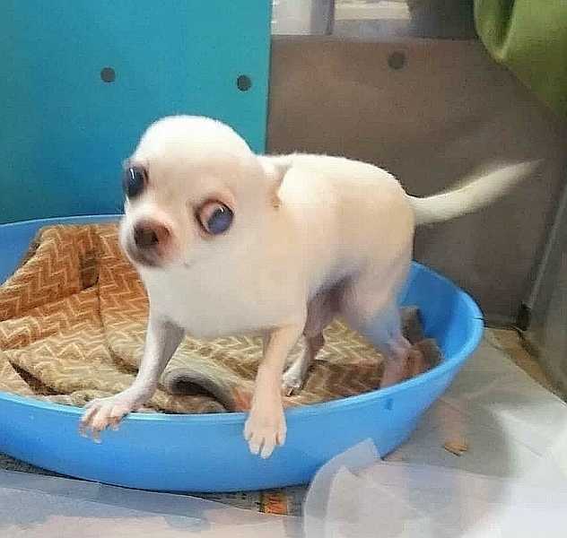 | 特徴(性格など) | スムースチワワの男の子、ドドくんです。どうぞよろしくお願いいたします。 純白で、つぶらな瞳をクリクリさせながら走る姿は愛らしいの一言につきます。ペットはもちろんおもちゃではありませんが、おもちゃみたいです。家族になったら、なくてはならない存在になるでしょう。 賢くて人のいうことをよく理解します。人に尽くそうとしているようで、顔を伺うしぐさから忠実さが感じられます。物覚えが早く、よく指示に従います。 小型犬は長寿です。ドドくんも健康状態に問題はなく、仔犬のように活発です。 |