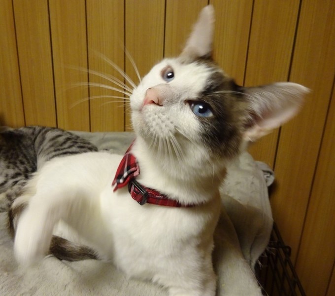 | 特徴(性格など) | 元気いっぱい「楊梅(やまもも)」ちゃん♡ 遊ぼぉ~♪遊ぼぉ~♪催促の甘えっコ♡ 現在、ロイヤルカナン成長後期・子猫用を置き餌として、パウチなどを一日2回、与えています。 <推定誕生日:6月下旬> |