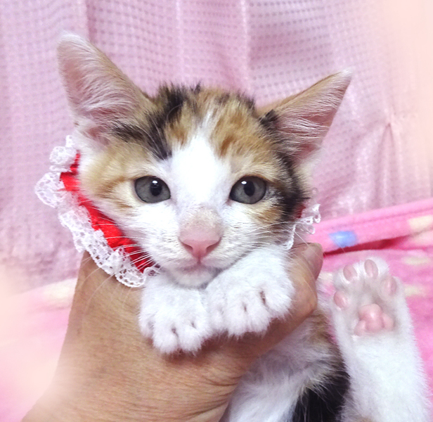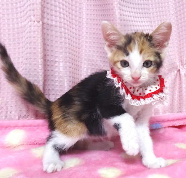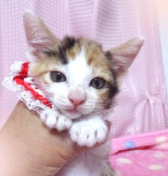 | 特徴(性格など) | 【猫の仮名】 美衣(みい)ちゃん (担当 松嶋) 【毛色・柄】 三毛、長いシッポ 可愛い顔の女の子で、乳飲み子から育てたので大変人慣れしています♪ 猫を飼うのが初めての方でも大丈夫です♪ 走っても大丈夫なペット可のお住まいで、家族の一員として生涯大切にして下さるご家族を募集しています。 兄弟のペッパーくん、またはライトくんと一緒に譲渡できるご家族を優先させていただきます。 |