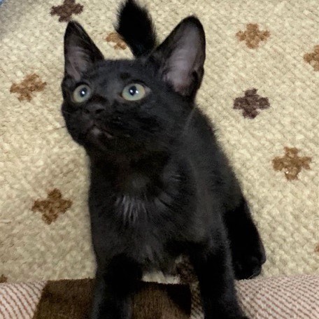 | 特徴(性格など) | お腹だけ白が混じっていて、お耳が大きめな愛らしいお顔をしています。少し臆病で怖がりなところがありますが、慣れると遊ぶのが大好きで、兄弟といつも楽しそうに遊んでいます。 最初は怖くて、シャーしてしまったり隠れてしまうかもしれませんが、ものすごい食いしん坊なので(笑)食べ物ですぐに釣れると思います! |