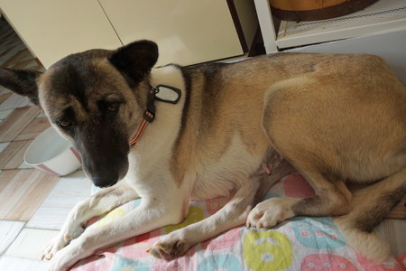 | 特徴(性格など) | 仮名「ちとせ」♀ ◆医療処置◆ ・ワクチン接種済み ・狂犬病予防注射接種済み ・フロントライン済み ・フィラリア弱陽性(投薬中) ・検便 ・検便&駆虫済み ・不妊済み ・体重21キロ 野犬の多い地域より捕獲されセンター収容後引き出されました。 とても慎重で怖がりですが、攻撃性は一切なく、とても優しい子です。 顔は真っ黒ですが体は白と黄土色と黒がちょっと珍しい感じで入っています。 毛はシングルコートの短毛です。 引き出し直後体調を崩し、子宮蓄膿症のため緊急手術をしました 術後の回復も早く退院後我が家に移動しました。 今現在は元気に過ごしております。 今はゆっくりですが家族にはずいぶん慣れ人と暮らすことなど学んでいます。 とても怖がりな子ですが、基本優しい子で我が家のねこちゃちも安心して一緒に寝ています。 室内では大人しくイタズラ等は一切ありません。 トイレは完全外派で散歩で済ませます。室内での粗相はありません。 初めての場所が苦手で、特に室内では全力で逃げようとする場合もありますので、 病院や散歩は子供やお年寄りだけでは難しいです。 先住犬が居る家でも喧嘩にはなりませんが、あまりしつこくくる子が苦手です。 嫌いと言うより知らない犬が怖いようです。 ちとせ室内では大人しいですが、お散歩が大好きで、長い散歩を好みます。 犬と沢山散歩したい方、慣れてきたら一緒に山登りやハイキングを楽しみたい方にも向いています。 お子さんが未就学児~低学年までは難しいと思います。 子どもの急な大きな声が苦手です 人と暮らすことをまだまだ学んでいる最中。 しっぽを振ってお迎えしてくれたり、甘えてくれるのは今後も無いかもしれません。 ですがちゃんと飼い主を信じ、頼りにしてくれる子です。 家の中ではフリーでもちゃんとそばで寝ています。 信じた人を信頼し、安心することが出来るようになっています。 今まで人を見たら逃げる生活をしてきた子です。 ゆっくり付き合って下さる方にお願いしたい子です。 それと室内からの脱走防止、散歩では首輪やハーネスが抜けないように 細心の注意をしてくださる方にお願いしたいです。 |
