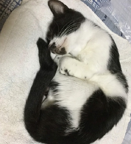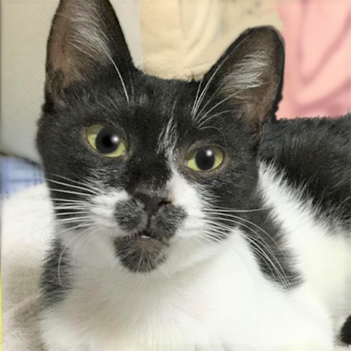 | 特徴(性格など) | 前足を折りたたむと白地に黒の●ができるので「あしまる」と呼んでいます。元々まっすぐだったしっぽは事故のせいでカギしっぽに。 人間大好き!な母猫が生後すぐにお披露目してくれたこともあり、人間にはとても慣れています。 お手々にチョンチョンと水をつけ、口元でペロペロする水飲みスタイル。 |