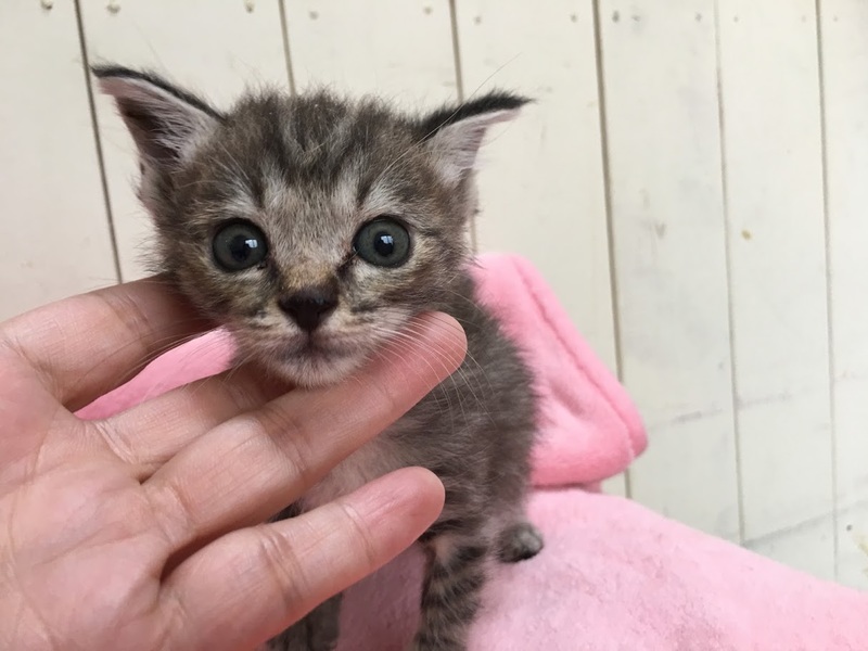 | 特徴(性格など) | キジの1ヶ月ぐらいの女の子です。 とても元気で人懐っこいです。 |