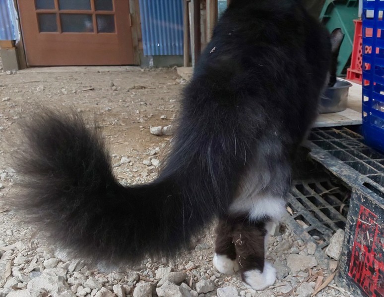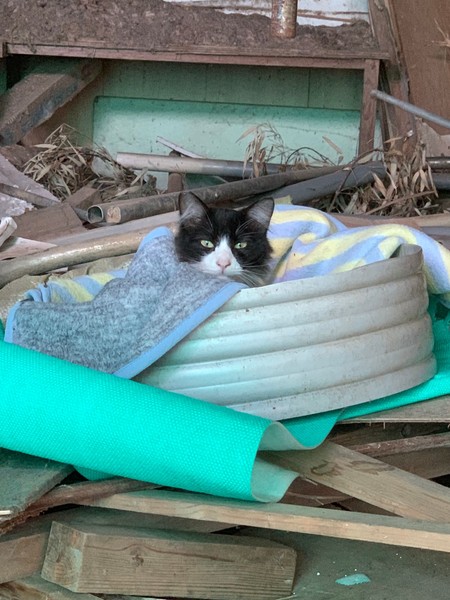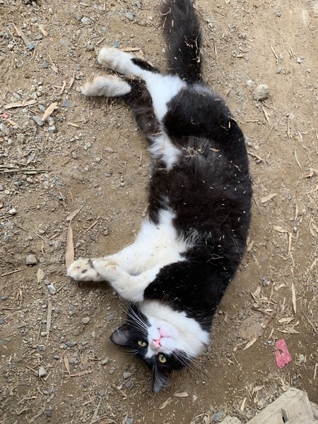 | 特徴(性格など) | 仮名:八雄(はちお) 1才位 ●白黒はちわれさんで、モフモフの長毛です。 ●現場に住み着いています。(外暮らし) ●ベッドや湯たんぽ、用意するとすぐに使ってくれる話の分かる子です。 ●姿が見えなくても呼べば埃まるけになりながら、お返事して出てきます。 ●ナデナデが好きです。 ●ご飯のおねだりもします。 |