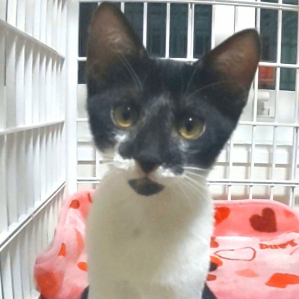 | 特徴(性格など) | 仮に「咲ちゃん」と呼んでいます。 目が開いたばかりの頃、愛護センターよりやってきました。 甘えん坊で、名前を呼ぶと走ってきます。 見つめるだけで、ゴロゴロ言います。 兄弟ではありませんが、同居中のエネゴリ君と仲良しです。 |